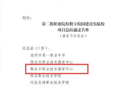 近日,中央电化教育馆公布了第二批“职业院校数字校园建设实验校”名单,全国共有126所院校入选,河北省获批学校4所,其中,衡水市职教中心榜上有名。这也是衡水市职教中心在信息化建设过程中的又一标志性成果。