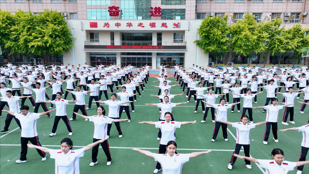 节奏强劲、动作流畅的青春活力操,展示了衡水十三中师生的精神风貌。
