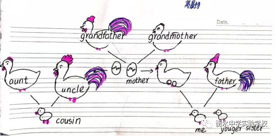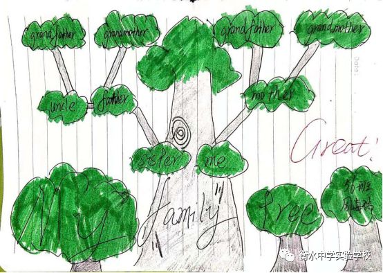 语言之美在于思考。德国思想家席勒曾经说过:“思考是我无限的国度,言语是我有翅的道具。”英语不仅要大声读出来,还要大胆画出来!让我们欣赏一下七年级的同学们整理的英语思维导图“family tree”吧!
