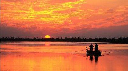 少女出浴披薄雾,华北水城看日出。