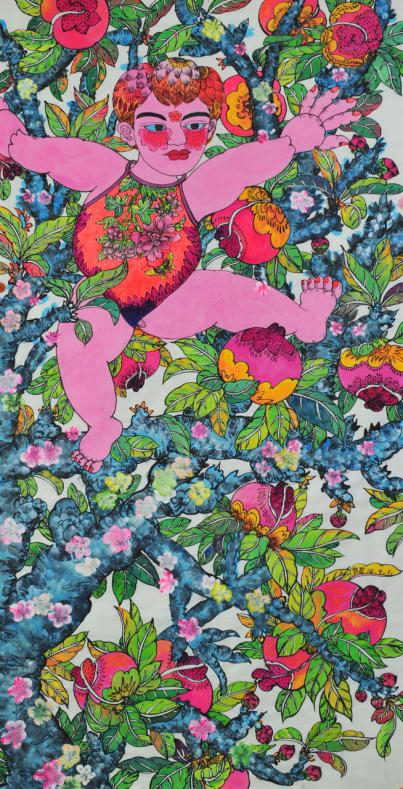 她的伙伴俊娥,用小拳头锤打着她的肩膀说:“你怎么一夜之间就学会画画了。”她也用小拳头锤了俊娥一下肩膀,算是另一种回答。