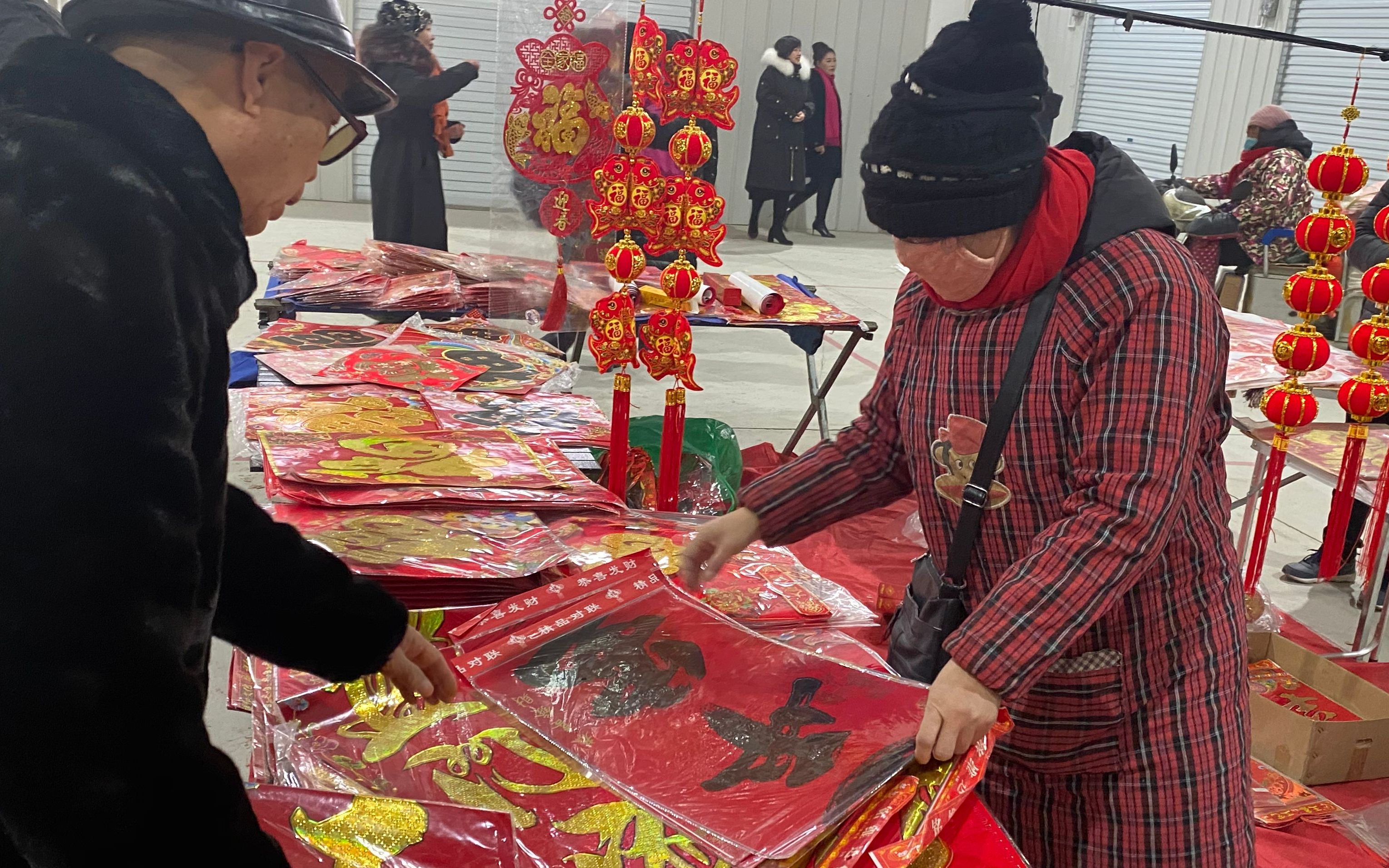 贴上春联、挂上福字,才是地道的中国年。在节日装饰品销售摊位前,金闪闪的福字和寓意吉祥的春联、以及各种春节挂饰吸引了许多市民购买。“我们专门从河东赶过来的,”刘女士带着父母细心地挑选着福字,她说:“早就听说了年货节要开幕的消息,特意带老人来年货市场里逛一逛,感受年味儿,老人特开心!”