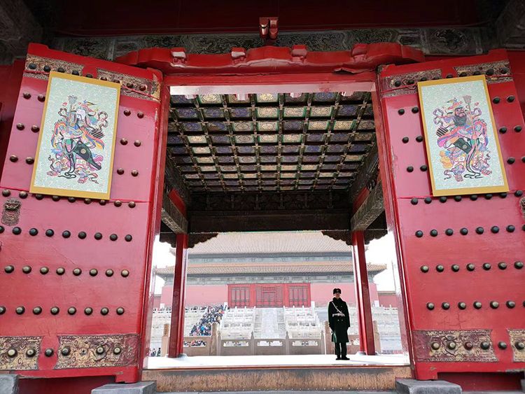 乾清宫挂上武门神。