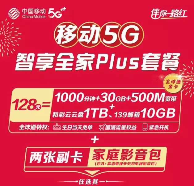 2020年了,你还没有使用5G?首先给大家介绍一下,最关心的5G套餐的资费问题,下面这个套餐当属当前最火爆的5G套餐啦!每月仅需128元不仅可以优享5G网络,还送2张副卡可以和家人共享,更有500M宽带相送,尊享众多权益!