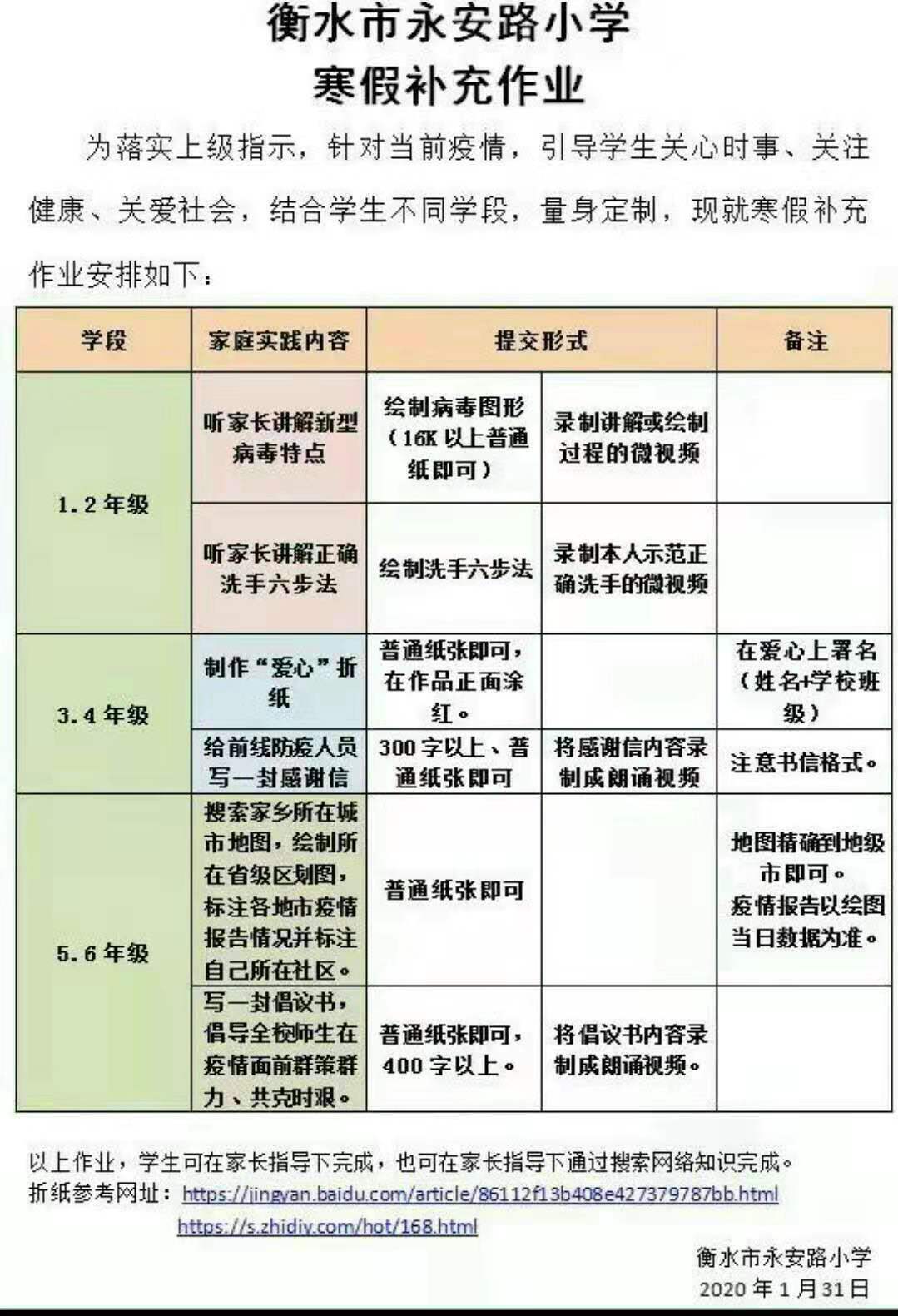 针对当前疫情,衡水市永安路小学为引导孩子们关心时事、关注健康、关爱社会,结合学生不同学段,量身定制,给孩子们留了一份特殊的“寒假补充作业”。