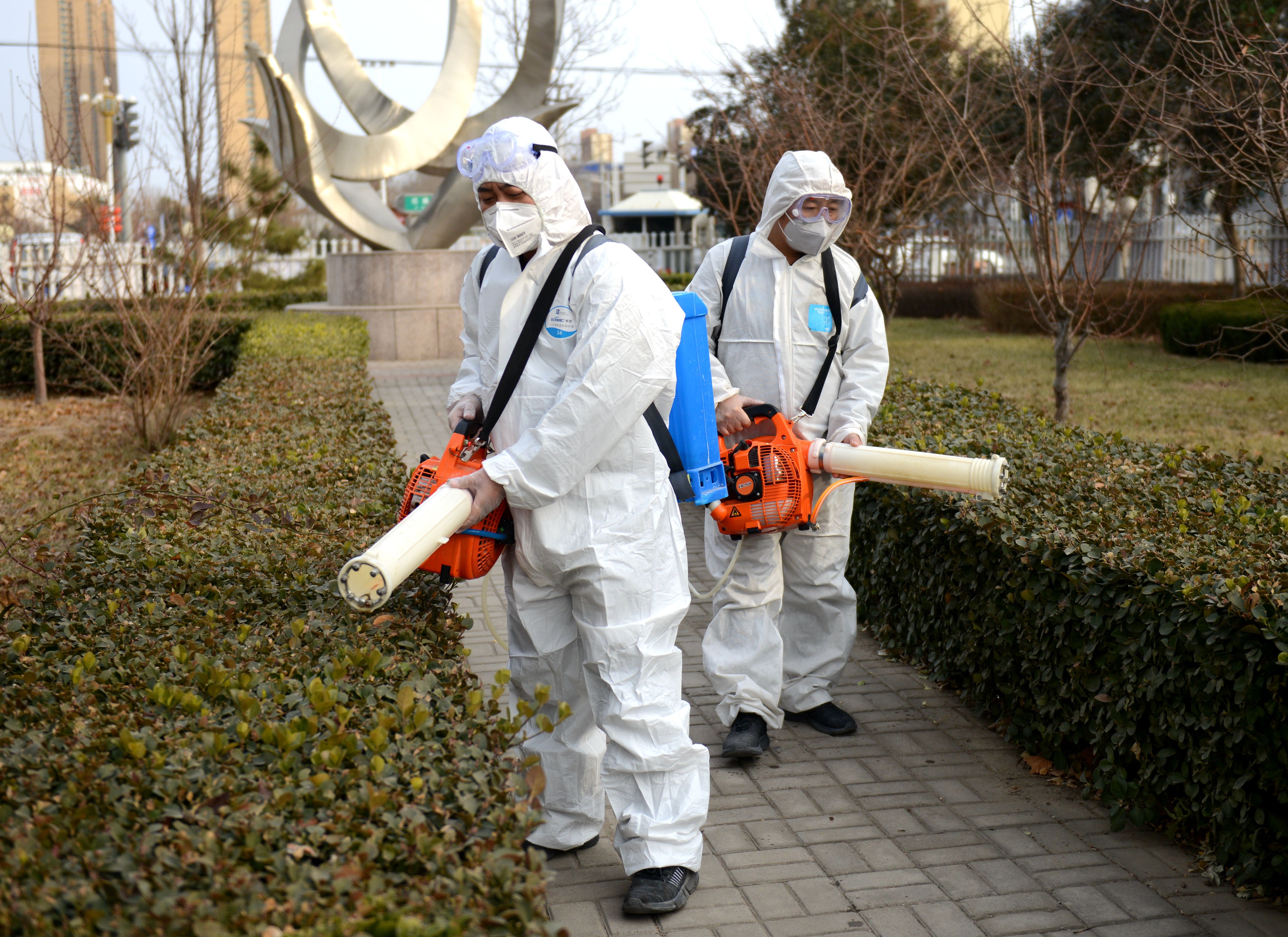2日下午3时许,市疾控中心消杀科的消杀队员来到衡水日报社。记者见到他们时,他们顾上不说话,几个人默默地脱掉羽绒服,套上白色的防护服,戴上护目镜,背上消毒喷雾器,很快就投入到全面消杀工作中。“这是今天消杀的第八家单位了,还有好几家单位等着我们去,疫情当前,早一天杀灭病毒,就能早一天为市民安全筑起屏障。”一名队员说道。