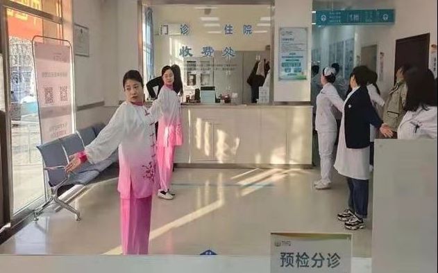 “自然站立,左手缓缓自体侧上举至头,翻转掌心向上,并向左外方用力举托……”近日,在武强县中医医院的微信公众号上,医护人员演示“八段锦”养生操的视频引发关注。