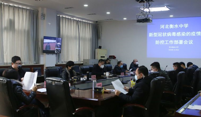 新冠肺炎疫情发生以来,衡水中学党委坚决贯彻落实国家和省、市关于疫情防控工作的部署和要求,迅速采取行动,完善应急机制,推出多项举措,强化工作落实,做精防控细节,全力推进防疫工作深入开展。1月27日,衡水中学召开党委扩大会,专题研究疫情防控工作。之后,学校成立了新冠肺炎防控工作指挥部,由党委书记、校长郗会锁担任指挥长,其他党委委员担任副指挥长。指挥部下设办公室,成立综合协调、学生防控、教师防控、后勤保障、舆情信息、纪律督查六个工作组,组长均为党员,合力推进学校疫情防控工作。学校研究制定了《河北衡水中学关于做好新冠肺炎疫情防控工作的实施方案》,指导全校上下全面做好疫情防控工作。之后,学校又先后以视频形式召开了五次疫情防控工作部署会或调度会。党委书记、校长郗会锁传达了各级党委政府关于做好疫情防控工作的有关文件要求和会议精神,并就做好衡中疫情防控工作作了动员部署。他要求全体党员发挥先锋模范作用,冲锋在前,带领全校师生打好防疫阻击战。他提出了六个方面要求。一是要时刻保持“4个敬畏意识”,即敬畏职责,敬畏纪律,敬畏科学,敬畏生命;二是要严格落实“6个讲”,即讲政治,讲责任,讲担当,讲大局,讲团结,讲奉献;三是要认真履行“6个负责”,即对自己负责,对家人负责,对师生负责,对班级负责,对学校负责,对国家负责;四是要自觉做到“16个三”,即站得高、看得远,吃得透、理得明,豁得出、顶得上,想得全、做得专,摸得清、报得准,盯得住、追得紧,动得快、把得严,管得细、抓得狠;五是要坚决做到“6个防止”,即防止只布置不检查,防止当包工头不做泥瓦匠,防止走过场不深入,防止只唯上不唯实,防止被动接受不主动作为,防止侥幸心理而不严防死守;六是始终坚持“6个原则”,即人民至上原则、属地管理原则、双战双赢原则、亲力亲为原则、配合联动原则、积极有效原则,全力构筑群防群治严密防线,坚决守护好师生的幸福安康。 他要求在防疫期间,全校要做到认识到位、摸排到位、方案到位、物资到位、人员到位、指导到位、整改到位、沟通到位、宣传到位、网络授课到位、责任到位、督查到位、评价到位。他提出,全校要做到停课不停学、停课不停教、停课不停育、停课不停研、停课不停比、停课不停进,要充分发挥中层干部作用、党员作用、家长作用、班主任作用。为在打赢疫情防控阻击战中充分发挥各党组织的战斗堡垒作用和共产党员的先锋模范作用,学校党委发出了《关于各党组织和党员干部、党员教师抗击新冠肺炎疫情的倡议书》,号召全校各党组织和全体党员,扛起政治责任,发扬斗争精神,增强斗争本领,主动承担校党委分配的各项任务,把初心写在行动上,把使命落在岗位上,众志成城、全力以赴、共克时艰,让党旗高高飘扬在防控疫情斗争第一线。同时,学校党委在全校开展了“战‘疫’党旗红”主题活动。在抗击疫情的各项工作中、各个岗位上,学校广大党员主动担责,带头工作,全面投入到学校防疫阻击战中。