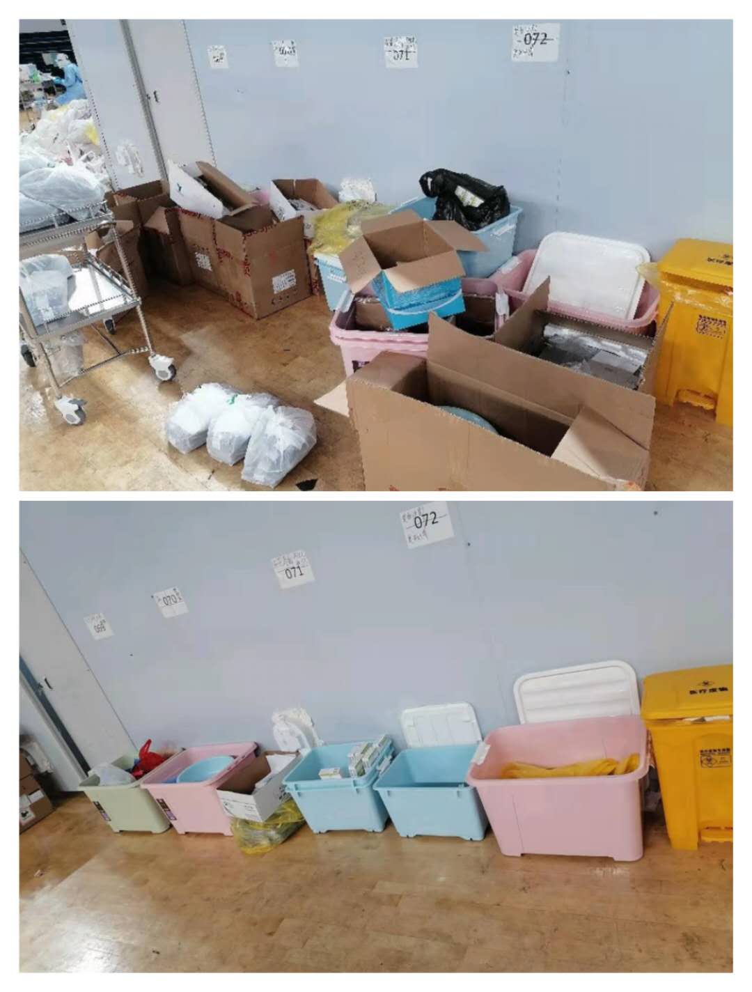 由于我们所在的方舱医院是临时应急启用的,十几支医疗队在一起磨合,病患多、医护人员工作负荷重,有时候忙起来,很多细节性的东西大家难免会忽略掉,交接班时就显得有些乱。我这个人有点工作狂,还有点强迫症,再加上我们以前在衡水五院的“6S”管理已成习惯,我实在受不了交接班时的杂乱。