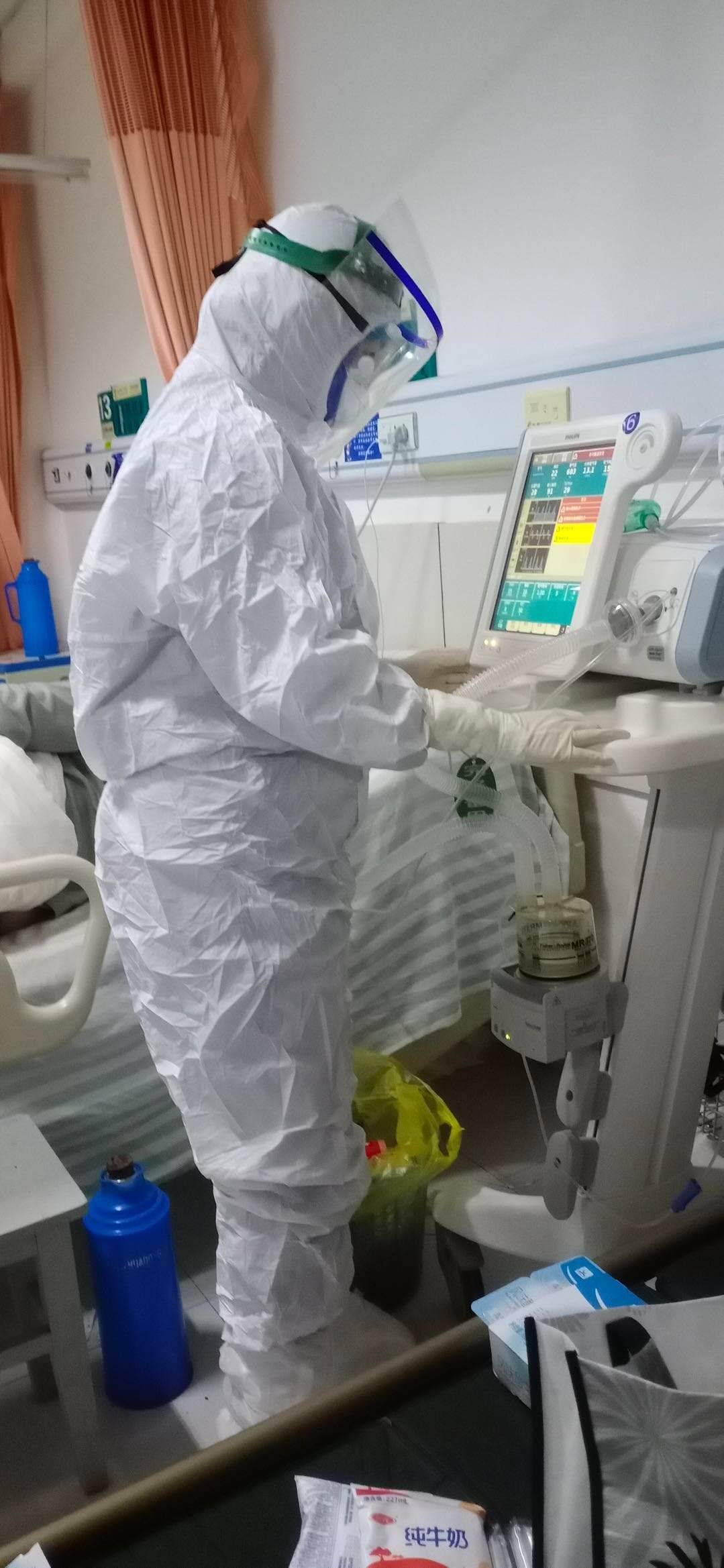 天刚蒙蒙亮,又是一个不眠之夜,但是心情特别的好!因为我们外援队一直精心护理的25岁重症患者各项指标都在好转,终于可以短暂脱离无创呼吸机,用鼻导管吸氧了。今天早起还是我负责他的所有治疗,五点半我准备好东西给他采动脉血!因为病情的缘故,几乎每天都要给他采动脉血查血气分析!双手的手腕已经成了马蜂窝,我看了后都特别的心疼,小伙子很坚强,用眼神告诉我:“没关系,扎吧!”……