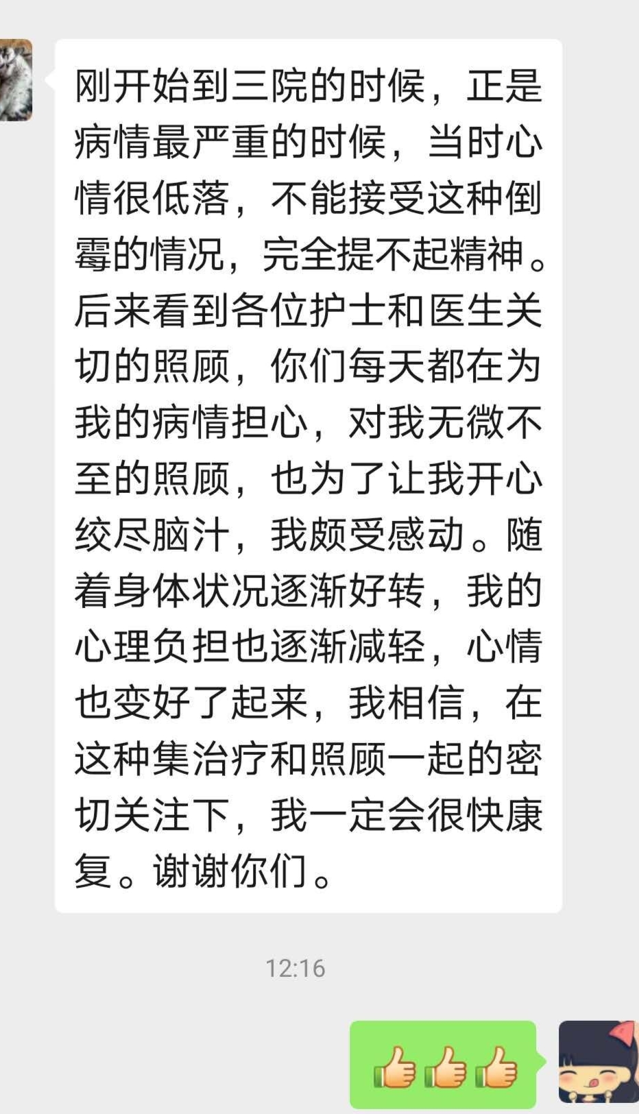 患者给任志新护士发微信诉说“心里话”