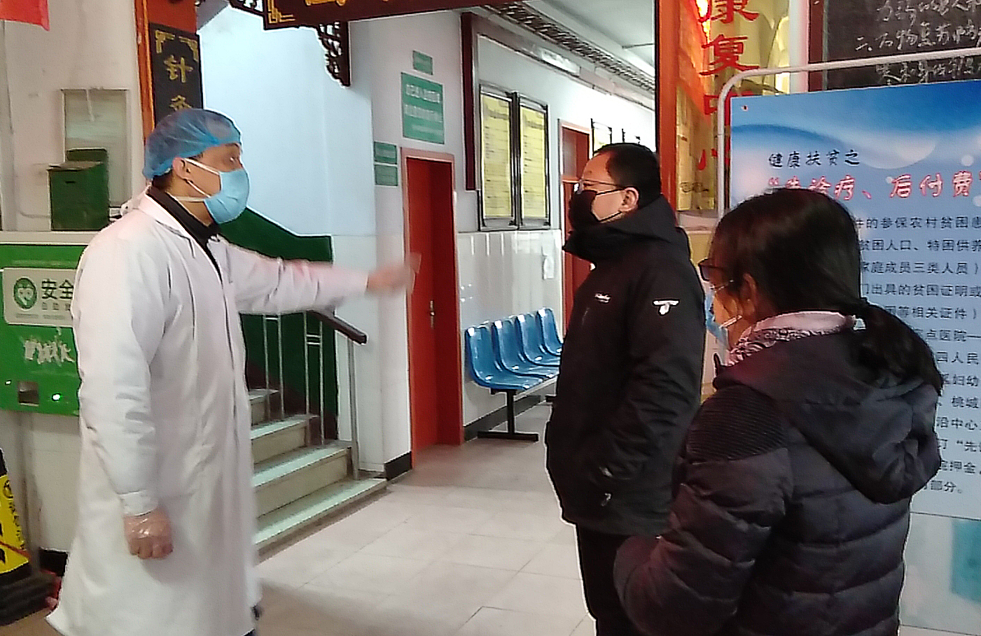 袁洪彪在河沿中心卫生院了解医疗废物处置情况。