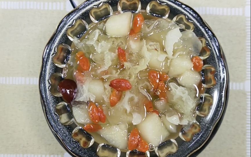 做法极其简单,只需要将雪梨去皮切块,和银耳、枸杞、冰糖、适量水放一起小火煮半小时即可。