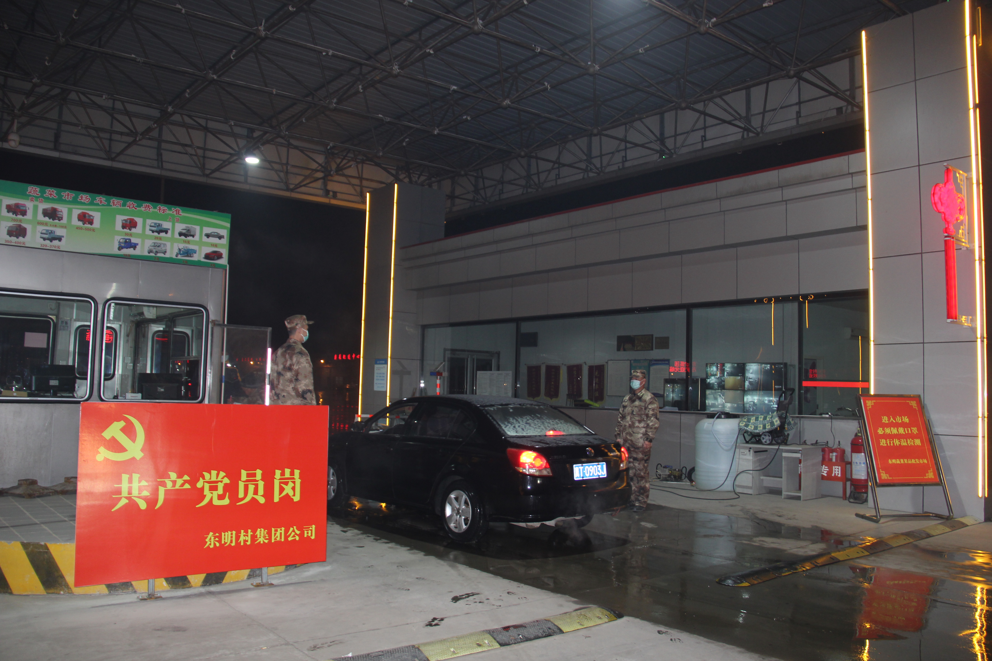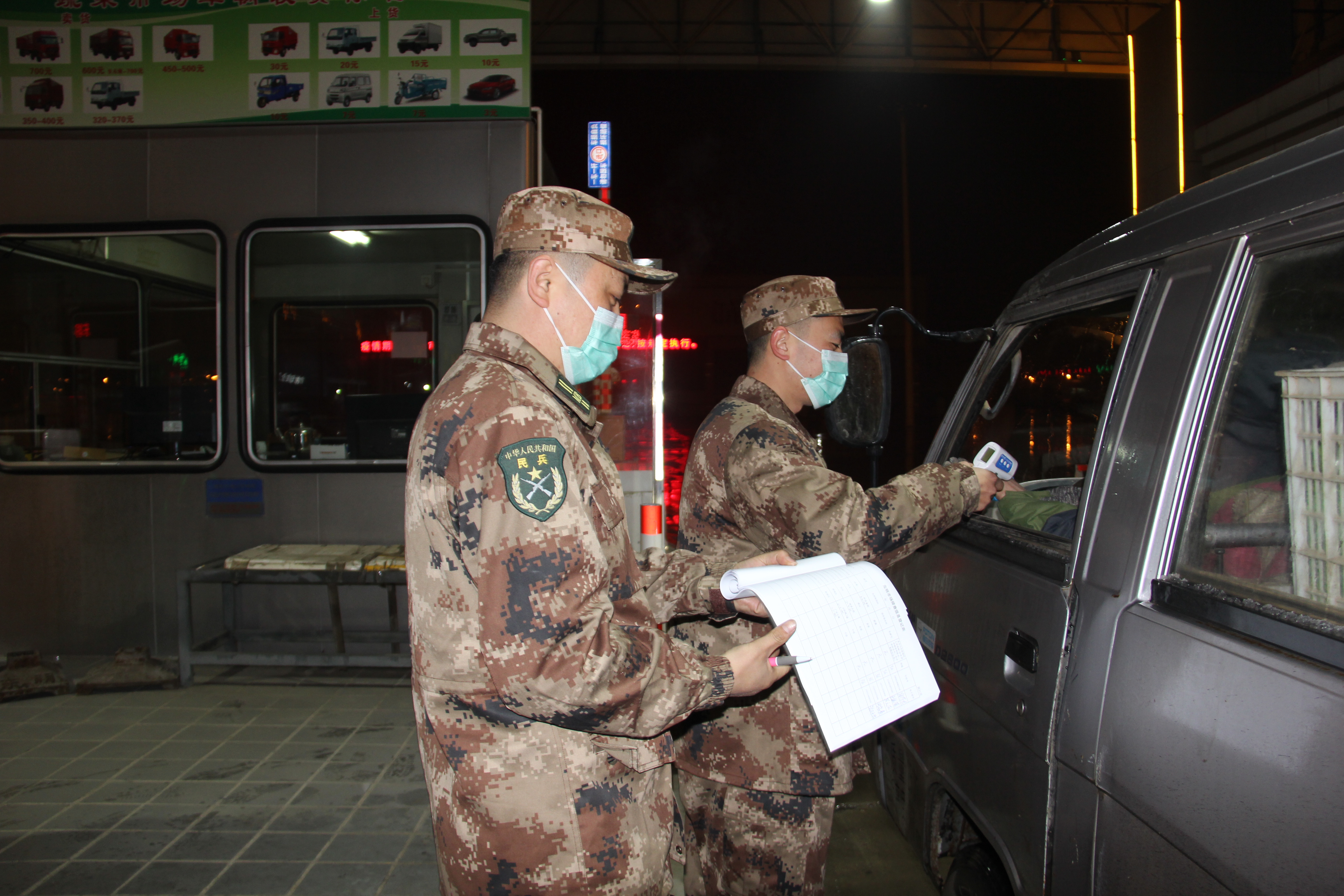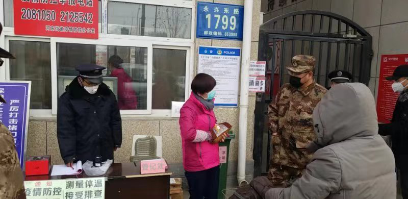 “您好!请接受体温检测!”日前,河东街道东明村物流园部分企业开始复工,在河东街道东明村集团物流园执法检查站3名民兵党员和工作人员共同把守物流园首道防线,认真检测所有出入人员体温并对随行车辆进行洗消。