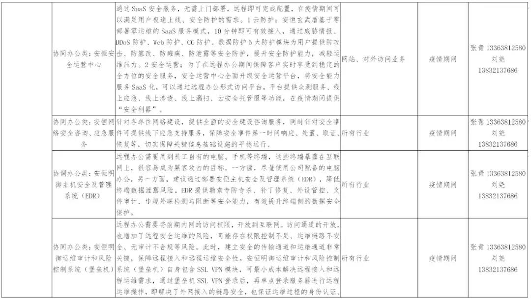 为贯彻落实市委、市政府关于做好疫情防控和复工复产工作的重要指示批示和决策部署,充分利用信息化、大数据手段,全力做好疫情防控和经济社会发展保障工作,市委网信办收集整理了一批助力疫情防控和复工复产、并在疫情期间免费或部分免费的信息化产品,共统计信息化应用和服务项目40个。各单位、企业可根据自身需求,自行联系咨询,选择使用。同时,具备相关资质的网信企业亦可提供更多实用产品,为夺取疫情防控和经济社会发展双胜利贡献力量。