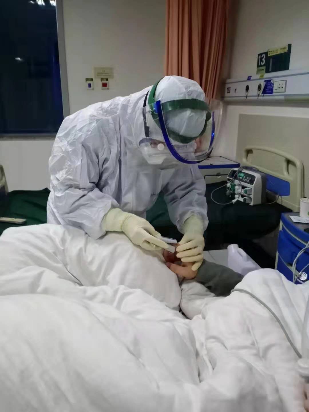 2月28日,孙涛随队启程,和队员们一起支援武汉江夏区第一人民医院,成为呼吸与危重症二科的一名主治大夫。他的工作单调而繁琐,查房,关注患者的生命体征、重要脏器功能、水电解质酸碱平衡等情况,随时根据患者病情调整药物及治疗方案,维持用药速度。患者中有心情焦虑的,他经常去开解;有与无创呼吸机配合不好的,他耐心指导其呼吸;即将被分别送往两家定点医院接受治疗的父女俩,离别前想见一面,他几经协调终于完成他们的心愿……提及支援湖北的这段经历,孙涛有讲不完的故事。