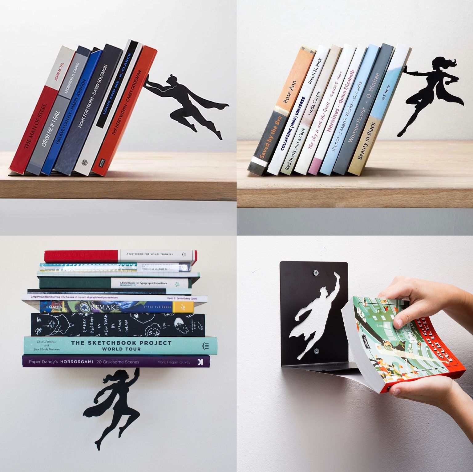 “超级英雄”来了,来帮你收纳到处乱丢的图书。这款以色列Artori Design设计工作室出品的书立,让超人造型的小人可以神奇地悬空推动仿佛马上就要倾倒的书。这个造型得益于超人身上的微型磁铁,部分书立被图书封面隐藏,你看到的就是一副“力挽狂澜”的样子。