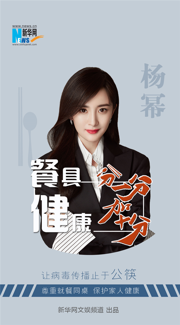 郎朗、黄晓明、杨幂、倪妮、胡军、王宝强、吴尊、杨子、黄圣依、张云龙、刘芮麟、祝绪丹、彭昱畅、陈立农、代斯、赖艺、边天扬、葛诗敏、黄梦莹、李子峰、易大千、庄达菲等明星名人,与我们一同发起倡议,倡导实行“分餐制、公筷制、双筷制”,重塑文明就餐习惯,让“公筷意识”深入人心,让“分餐进食”成为文明标配。