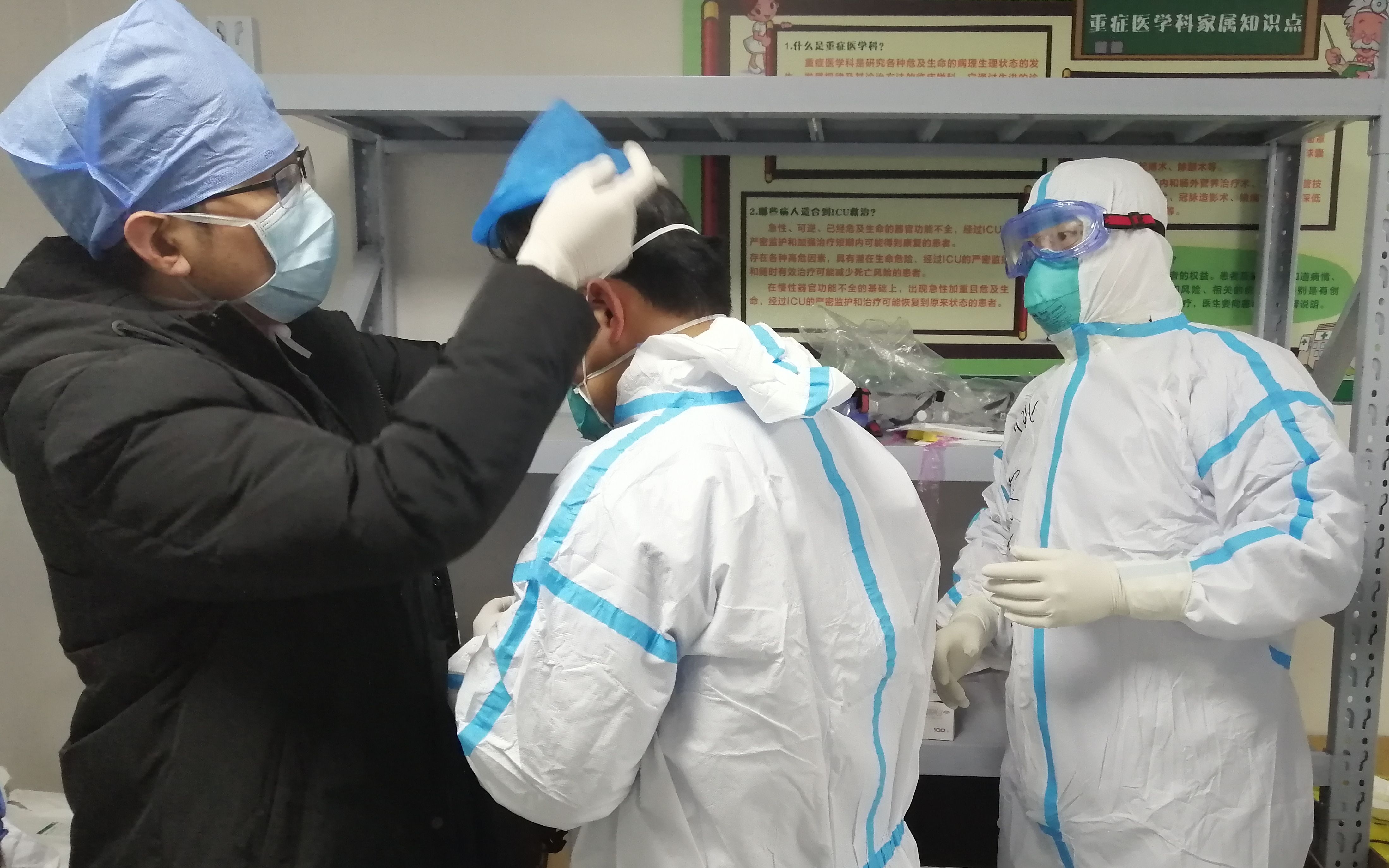 因为有ICU工作经验,我被分配到重症组,和其它同事一起接管七院的重症监护室。入驻初期,我们面临了太多的困难:环境陌生,语言交流障碍,工作强度大、最大的困难就是防护物资极度匮乏。面对困难我们想尽一切办法克服,少吃饭,不喝水,穿纸尿裤,这都是“常规操作”。原本计划8小时一班中途出来更换一次防护服,但考虑到防护服紧张,又调整为6小时一班,中途不出来。虽然防护装备的有效防护时间是4-6小时,但是加上穿脱防护服,以及病房内交接班的时间,我们每个人实际上需要在ICU里持续工作7——8小时,已经超出了防护服的有效防护时间,风险是很大的,但是为了节约物资,我们必须坚持。