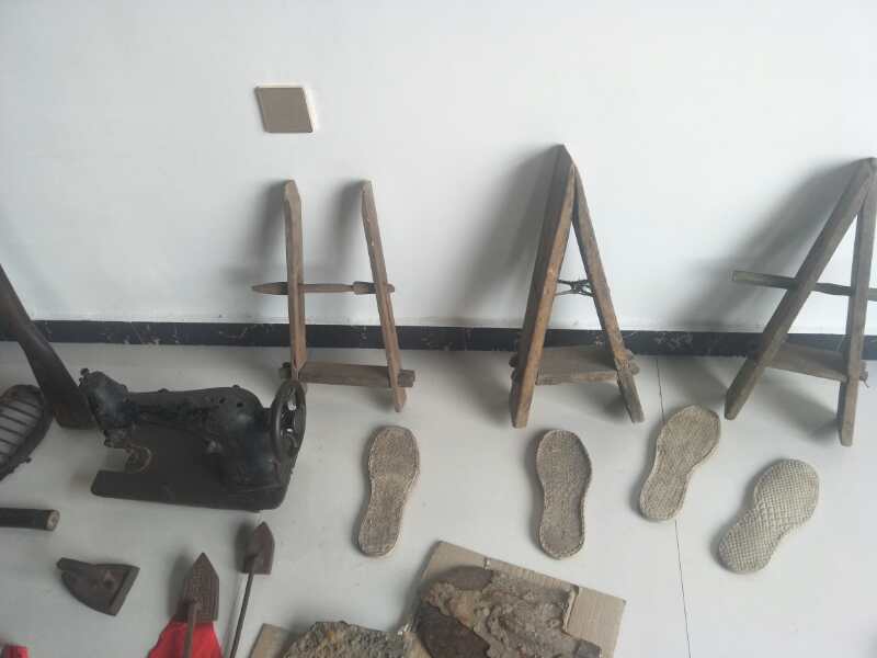 王建忠的红色文化收藏馆为二层沿街楼。三辆架子车、织布机和扇车占据了一楼房间的多半空间。王建忠介绍,架子车是抗战时期和解放战争时期,安平老百姓支援前线运送被服、粮食和武器的工具;安平老百姓用织布机织布,再用布缝制军衣、军鞋和军帽;扇车的作用就是保障运往前线的粮食都是干净的,农民把刚打下的粮食放在扇车里,就会把其中的麦皮、米糠或其它杂质分离出来;还有台城村被服厂使用过的缝纫机,做鞋用的鞋底夹子等等物品。虽然这些物品都已经老旧或破损,但都记录着安平县人民群众支援抗战和拥军爱国的炽热感情。