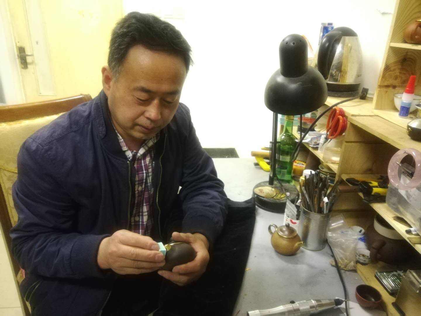 后来某次搬家时,王铁权不慎将这只小瓷杯摔碎。为了修补它,他决定自学锔瓷手艺。由于没有师傅,王铁权只能在古玩市场、博物馆里暗自揣摩,因为悟性高动手能力强,王铁权很快就能上手了。去年春天,为了更上一层楼,王铁权拜国家一级美术大师刘放为师,专门学习锔缮技艺。刘放从小跟随父亲学习锔瓷,对锔缮、篆刻、制扇等均有很深的造诣,在业内颇具威望。