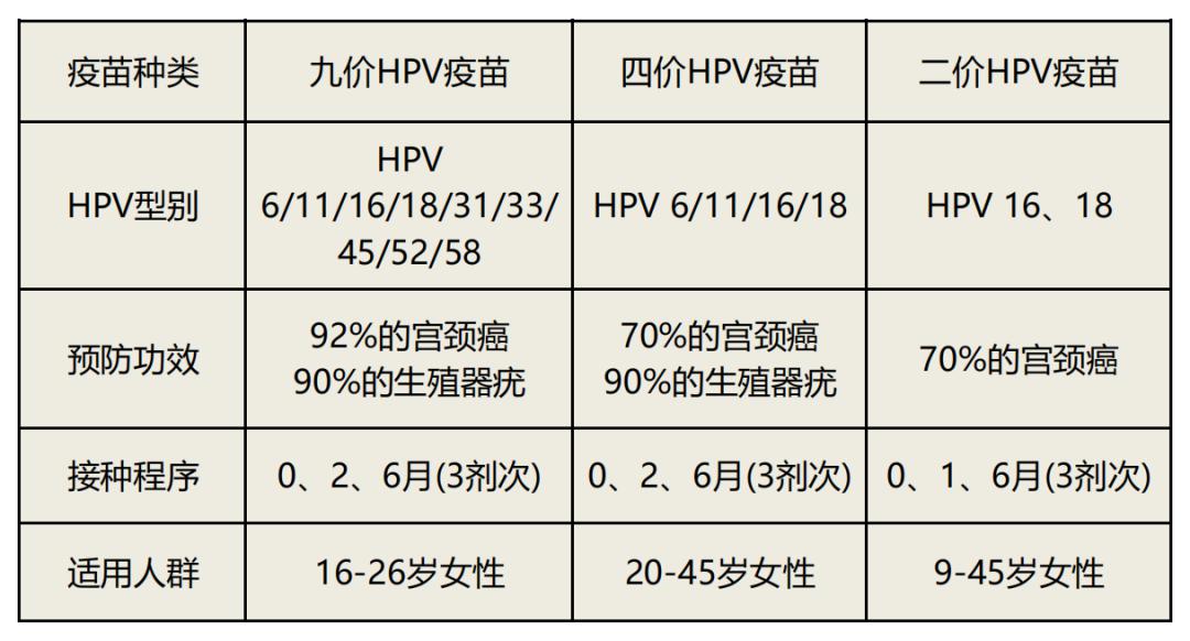 4、接种对象及程序:HPV四价疫苗适用人群为20—45岁女性;九价HPV疫苗适用人群为16—26岁女性。推荐0、2和6月分别接种1剂次,共计3剂; 首剂与第2剂接种间隔至少1个月,第2剂与第3剂接种间隔至少3个月,3剂应在1年内完成。
