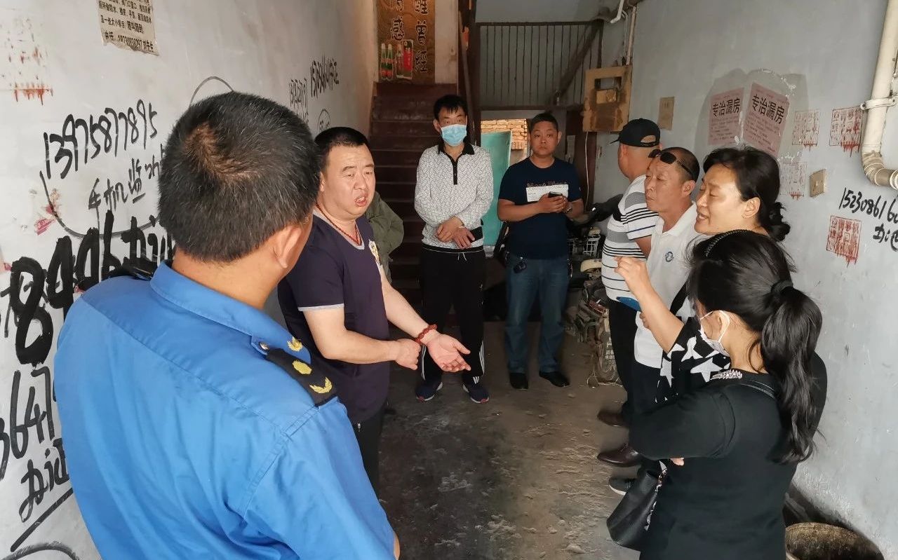 问津街商住楼三四层为住户,共8个单元22户,一二层为沿街门店,共18家,楼不大,问题不少。社区工作人员经过现场调查发现,问津街商住楼无封闭院落,楼道内不仅堆放了门店的商品杂物,住户在楼梯底部私自加装了门锁,用于存放个人杂物,公共空间被独占,不但存在很大消防安全隐患,居民出入也不方便,同时由于个人私加两道门,给楼西侧的下水道清理带来了不便,所以清理楼道杂物是问题解决的突破口。