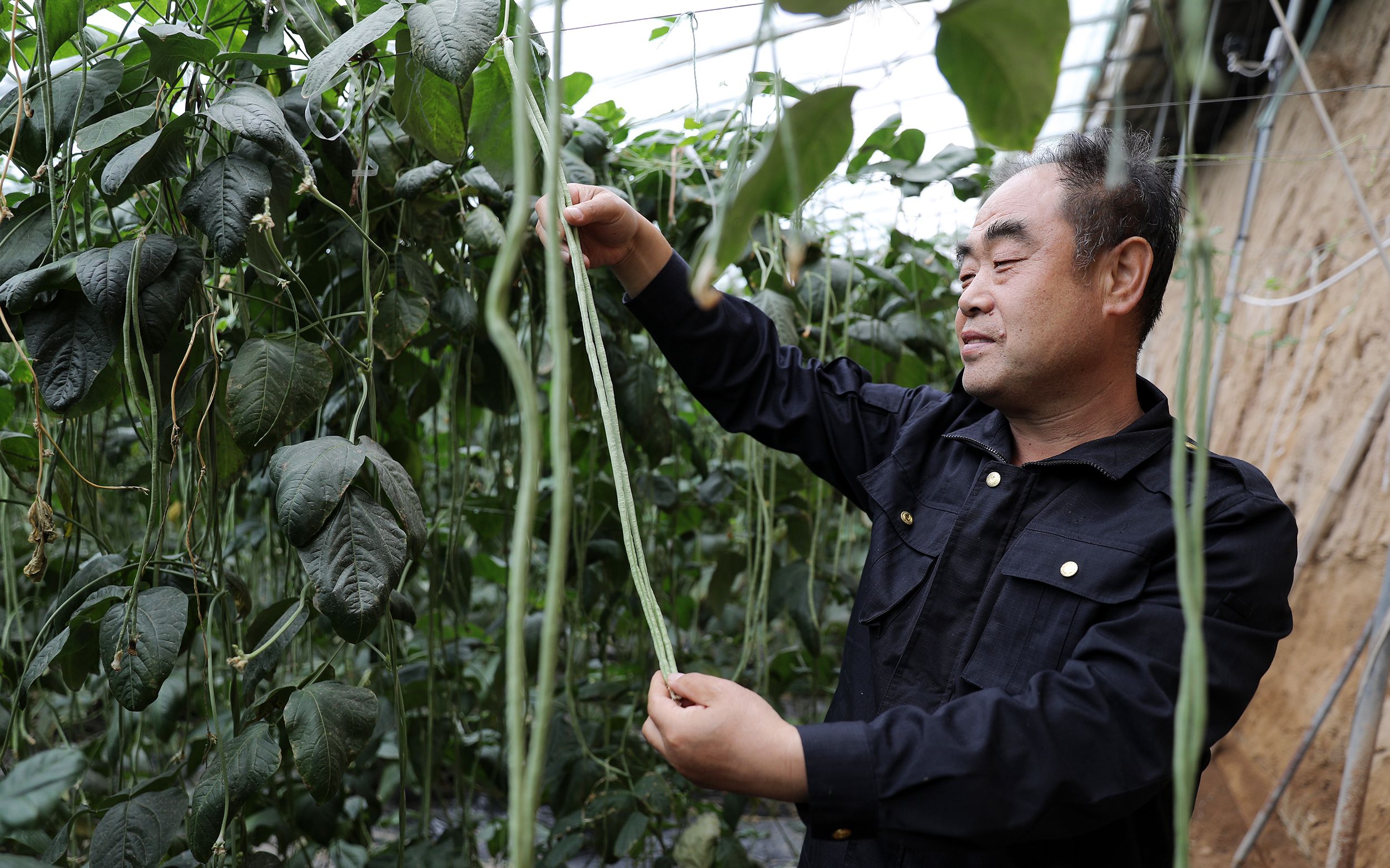 当记者跟随合作社办公室主任李泽来到一个豆角大棚时,遇到了正在忙着采摘的于新华。“今年已经是我在这打工的第六个年头了。因为文化程度低,以前我要跑到很远的地方打工,不仅挣得少,还照顾不了家人。当我知道这需要工人时,第一时间来报名。一个月2000多的工资,还学到了不少种植技术,我很满足。”于新华作为几个蔬菜大棚的负责人,每天都会严格记录大棚内的温度和湿度。说话间,李泽捧起几根又长又水灵的豆角向我们介绍,大棚全部实行滴灌和喷灌节水灌溉,同时,为了避免重茬种植带来的病虫害,大棚内的种植品种也是不断发生变化。“前天我们在这个大棚摘了1200斤豆角,主要提供给周边的市场,比如东明物流园,还有来自沧州的商户。如果摘下来的暂时没有人来拉,我们还会统一放到冷藏库中储存。”
