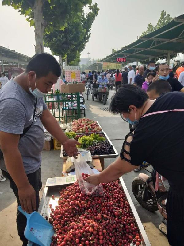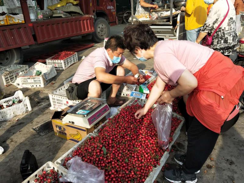 在报社街市场,也有多家销售樱桃的商户,根据品种和个头不同,每斤单价约5元、8元、10元。记者注意到,有些个头较小的樱桃售价降到了10元3斤,也比较受欢迎。“今年樱桃与往年相比价格偏低,樱桃种植面积增大是主因。从5月中旬开始,随着露天樱桃的大批量上市,价格也变得越来越‘亲民’。”一家水果店的老板赵先生介绍。