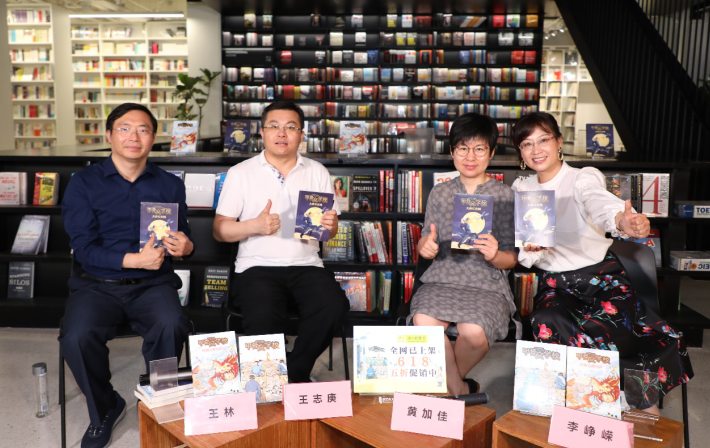 6月13日,由新经典文化·爱心树童书主办的主题为“回到大唐长安趣味解锁古代文化知识”的“甲骨文学校”系列新作线上分享会现场。从左至右依次为:王林、王志庚、黄加佳、李峥嵘。
