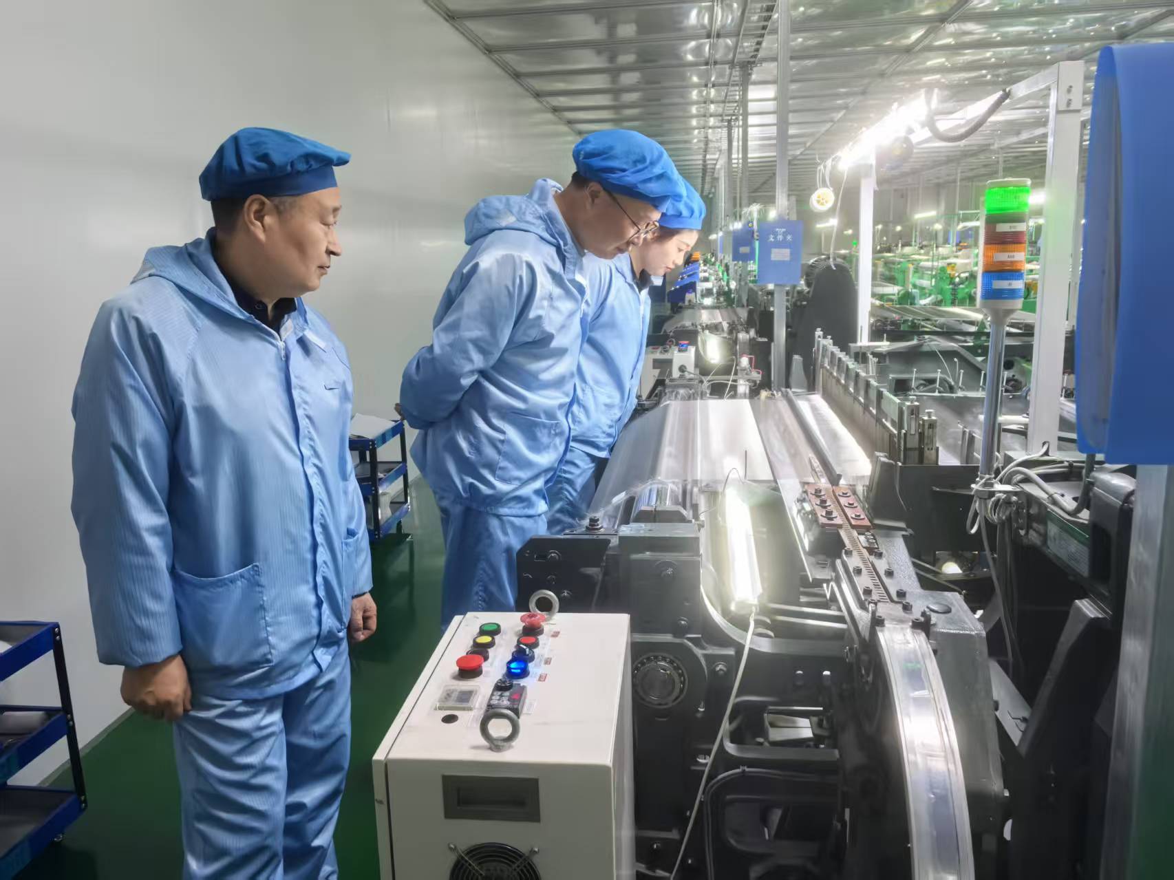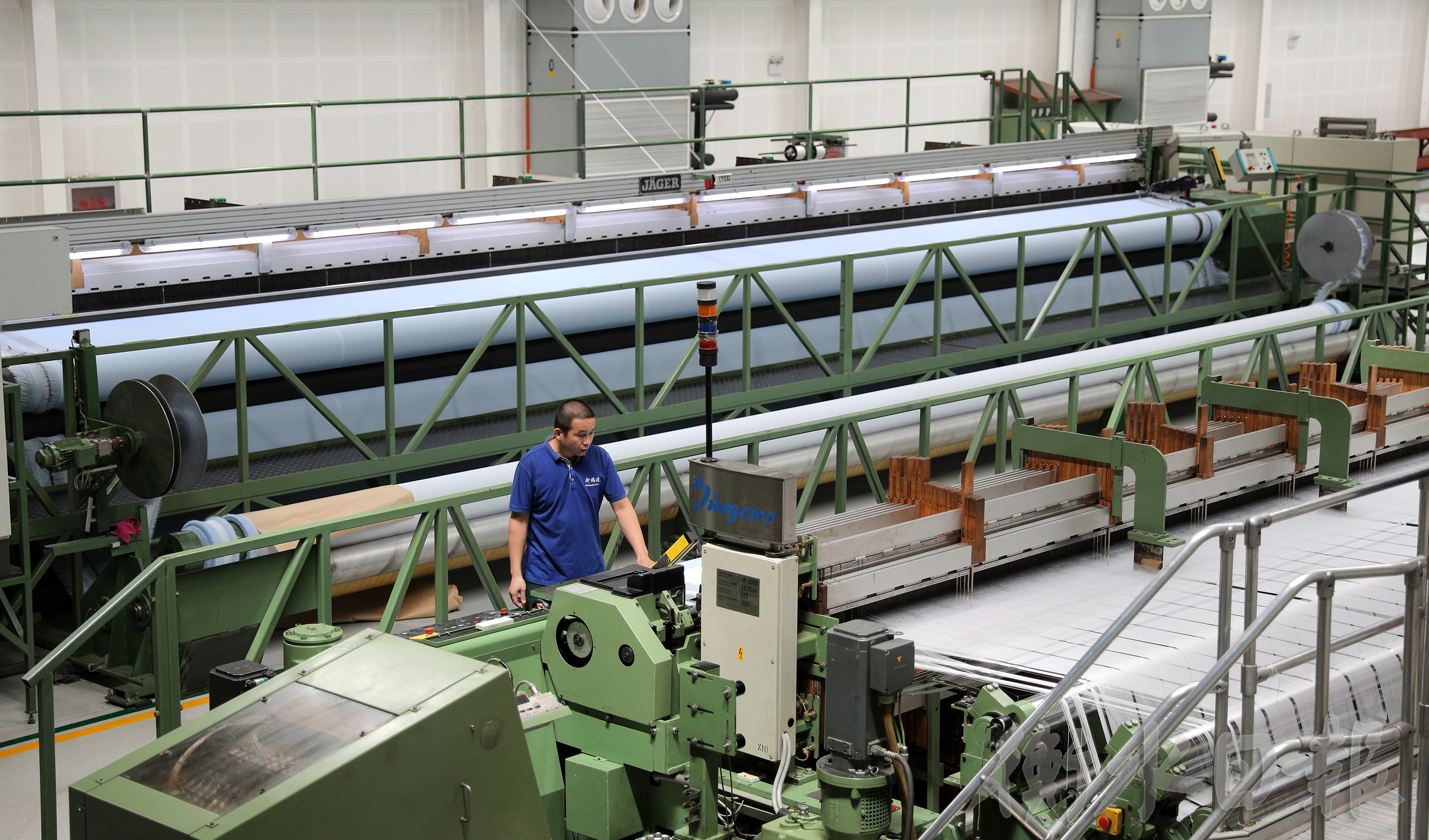 安平县鹤煌网业股份有限公司工人在生产线上工作。