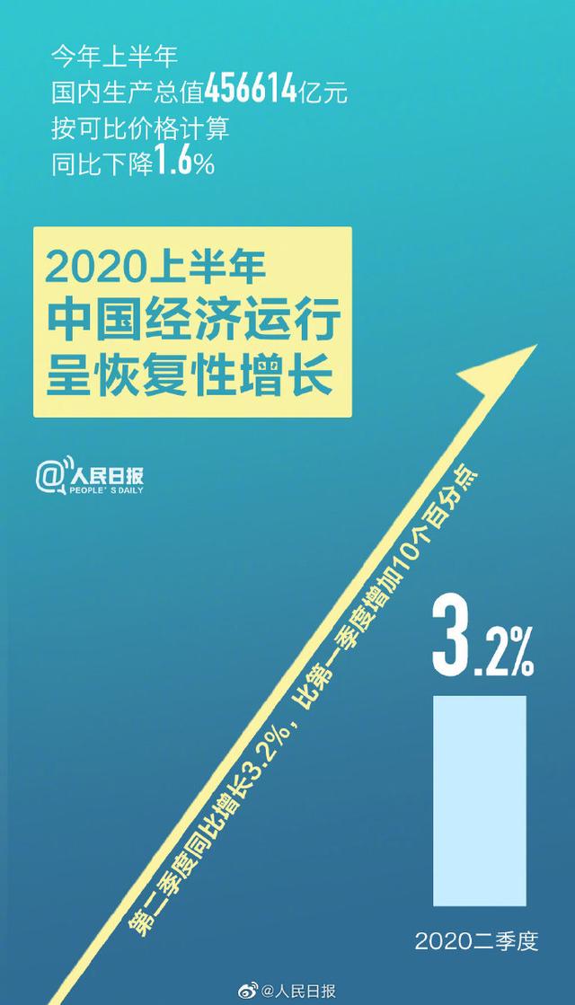 7月16日,国家统计局公布今年二季度和上半年经济数据。二季度我国GDP同比增长3.2%,由负转正;上半年我国经济先降后升,主要指标恢复性增长,经济运行稳步复苏,基本民生保障有力,市场预期总体向好,社会发展大局稳定。提气的数据,向好的态势,进一步彰显出我国经济的韧性与活力,进一步鼓舞起全社会的信心和干劲。