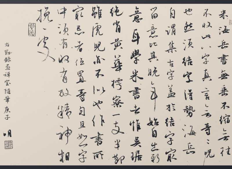 高考完的那个暑假,19岁的伟明拿到了河北省书协会员资格,“拿起毛笔来能把字写飞,骄傲得连走路都是飘的”。看出他的“得意”,张占军把伟明叫到工作室,拿着伟明近期的习作,一个字一个字挑毛病。“那是我印象中,张老师唯一一次对我的批评多余表扬”,伟明说,他现在清楚记得张老师说过的每一个字,“张老师说:‘楷书无非就是结构和笔法,你现在结构不准,笔法不精,还能剩下什么?一天天走路都飘,这样以后怎么有大出息?’”说完后,又给他详细讲解练字的方法对策,伟明听后如梦方醒,明白了心如止水,书无止境。