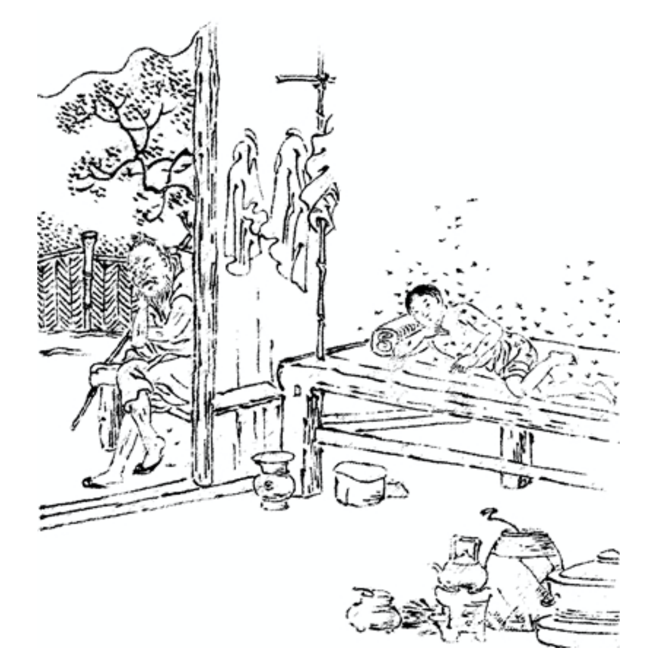与蚊帐长期以来的高高在上相比,蚊香倒一直是普罗主义的拥护者,一把最普通的艾草就能驱避蚊虫。宋代诗人梅尧臣就在诗中提及“驱蚊爇蒿艾”。如果艾草一时不称手,那么“端午时,收贮浮萍,阴干,加雄黄,作纸缠香,烧之”也能祛蚊虫。《物类相感志》记载“麻叶烧烟”也“能逼蚊子”。《普济方》提供了好几种制作蚊香的方法,从最廉价的做木工的锯末加上硫磺和少许信石做成的线香;到精致复杂,专供文士书斋避蚊的“香附子、苍术(半斤)、雄黄(别研)、樟脑(别研,各半两),右为细末,入雄黄樟脑和匀,重罗,打作香印,爇之。恐樟脑难打,临用时略焙令燥”做成的香印,任人自取。在华北农村,还有更随手可得的方法:烧稻草。至今一些人家傍晚烧把稻草点起的呛人浓烟,也能把蚊子熏得四处逃散。