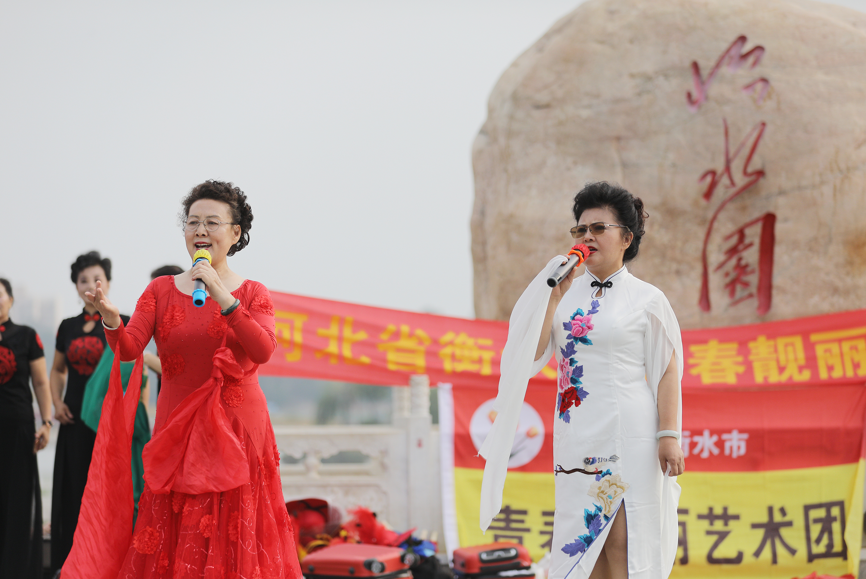 衡水市青春靓丽艺术团的老年队员在怡水园广场上表演。
