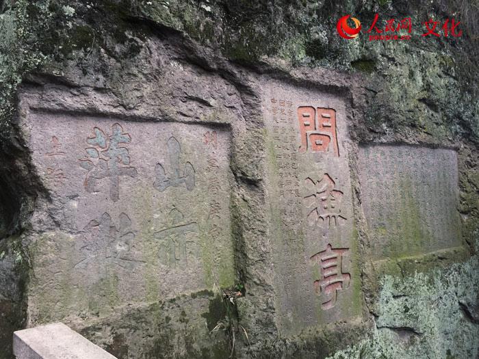 古代雅士在山石上的题字赋诗。人民网 孟丽媛摄