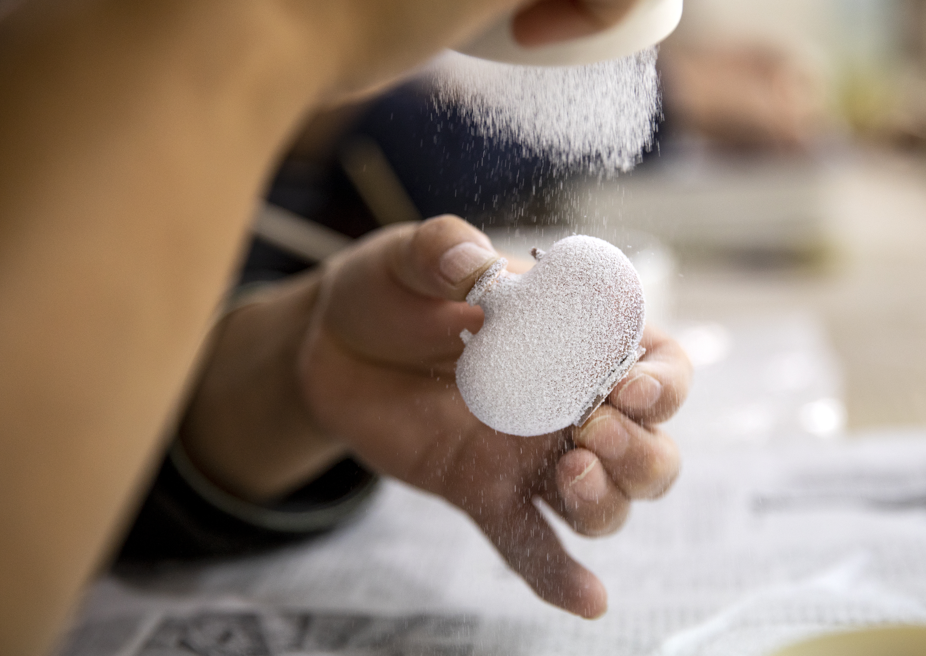 衡水市景县龙华镇铜胎画珐琅手工艺人在涂敷底釉。