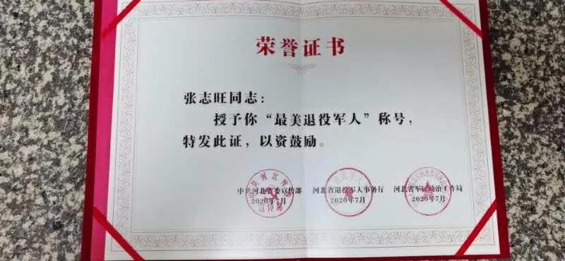 日前,河北省委宣传部联合省退役军人事务厅、省军区政治工作局在“最美河北人发布厅”录制了8名“最美双拥人物”、10名“最美军嫂”和10名“最美退役军人”的先进事迹,其中冀州区退伍军人张志旺喜获河北省“最美退役军人”荣誉称号。