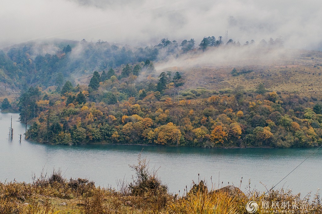 8、云南纳帕海的红叶交织高原之美。纳帕海自然保护区是滇西北最大的春季牧场,秋季来临,草原一片金黄,皑皑白雪的山峰倒影于湖泊中,黑颈鹤、黄鸭、班头雁在草丛中、水面上嬉戏,给广阔空灵的草原带来了生气。