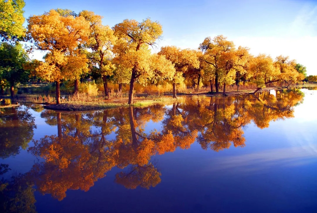 秋云飘逸,秋水如镜,秋阳透亮