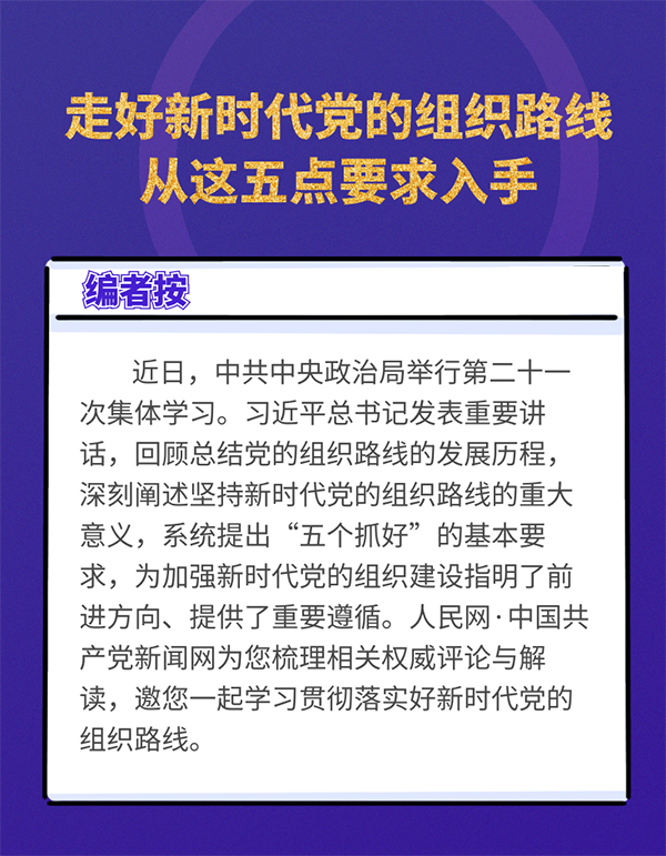 来源:人民网-中国共产党新闻网原标题:走好新时代党的组织路线从这五点要求入手