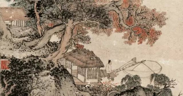 南宋刘松年《四景山水图》观山(秋)局部