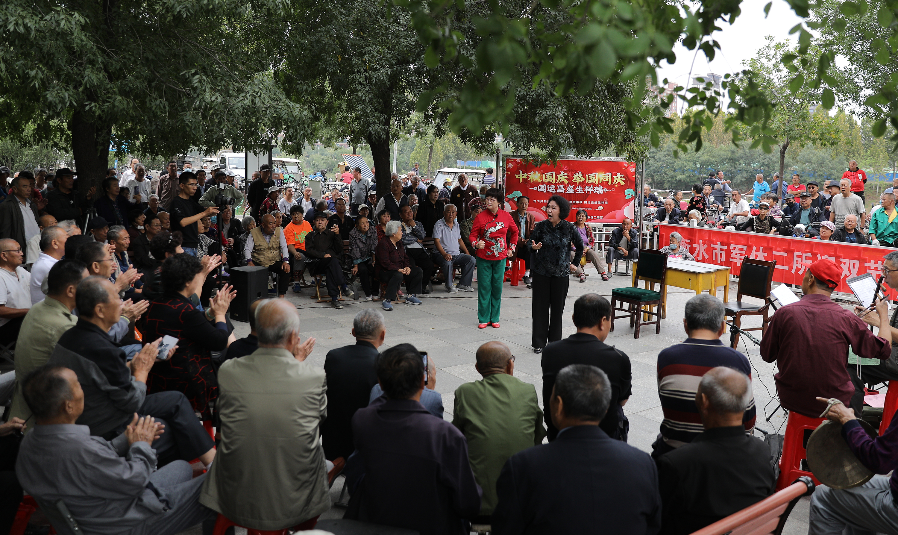 金秋送爽,丹桂飘香。9月28日下午,由衡水市退役军人事务局军休二所主办的迎“双节”军休干部文艺汇演活动在市区青年公园举办。演出在沙家浜选段《军民鱼水情》中拉开帷幕,军休干部同广大戏迷朋友、文艺爱好者欢聚一堂,欣赏了精彩纷呈的文艺表演,戏曲《红灯记》,歌曲《草原上升起不落的太阳》,萨克斯合《我和我的祖国》等节目表演赢得了在场观众的阵阵掌声。