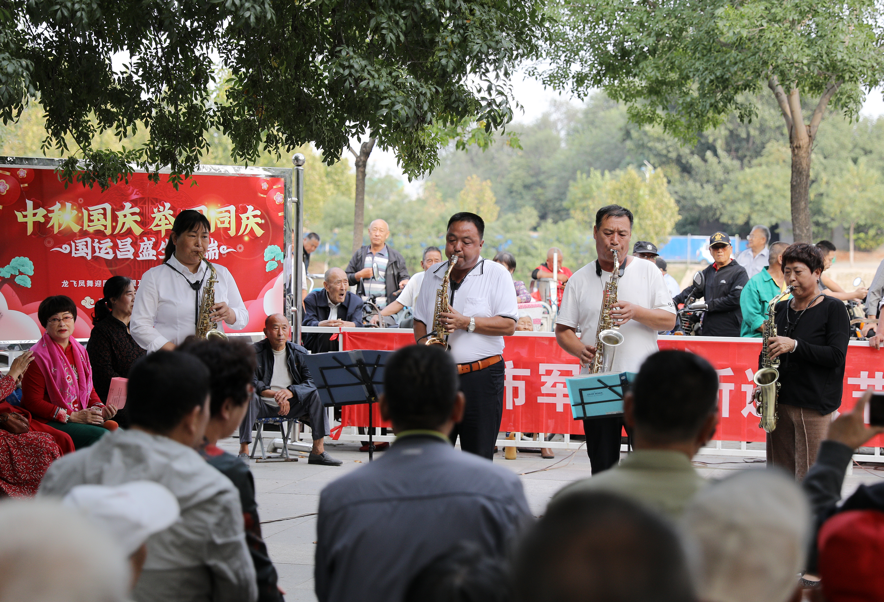 9月28日,萨克斯合奏《我和我的祖国》和《共筑中国梦》在青年公园响起。