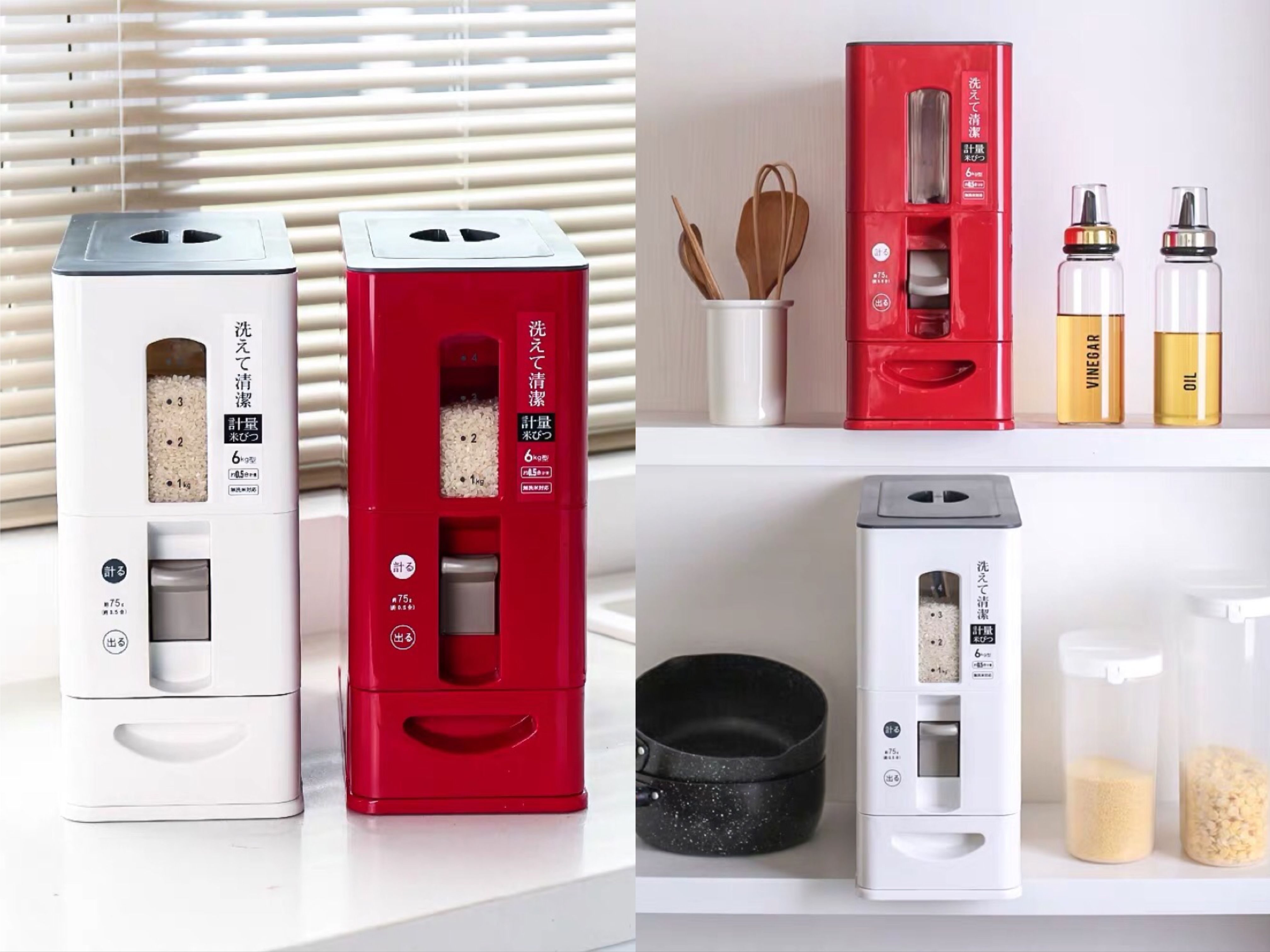 用大饮料瓶存放五谷杂粮,已经是过时的招数,这款密封防潮、可以自动计量的米桶,不但使用方便,而且高颜值让人眼前一亮。内置防潮棒、两端硅胶盖封口、透明的刻度,这些都是非常贴心的设计。单次出米量可计量,也让家庭厨房的“掌门人”可以轻松掌握食物制作的分量。