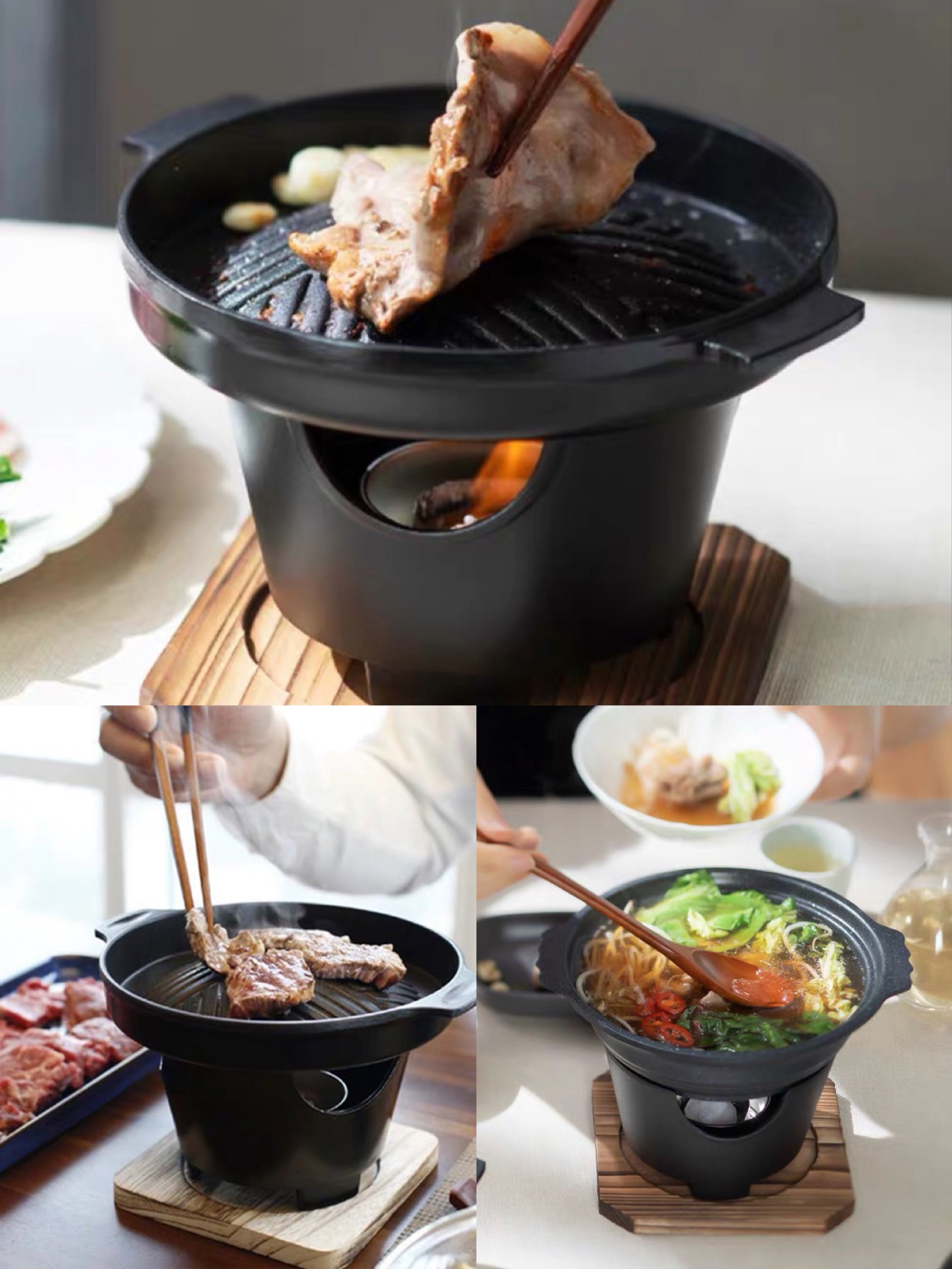 冬天吃烧烤再合适不过,但独自居住、又不想出门,这款一人食的烧烤炉就满足在家烤肉的愿望。烧烤炉采用压铸金属,不粘涂层让烧烤时即使不放油也不会粘锅。你还可以为它配上一个小火锅,这样,就可以烧烤+火锅随意切换,美滋滋的享受宅家美食的快乐。