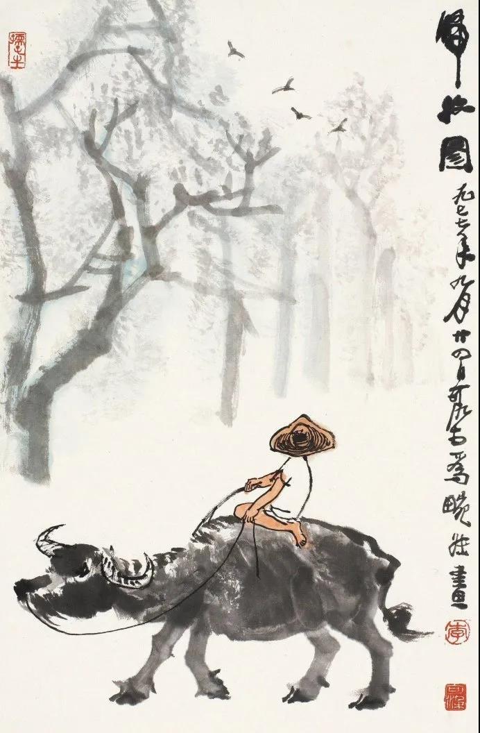 接下来,我们看见“田夫荷锄至,相见语依依”,实在很寻常很亲切。这就是村落的原生态,原汁原味的生活,有泥土的气息,有人与人的温度。