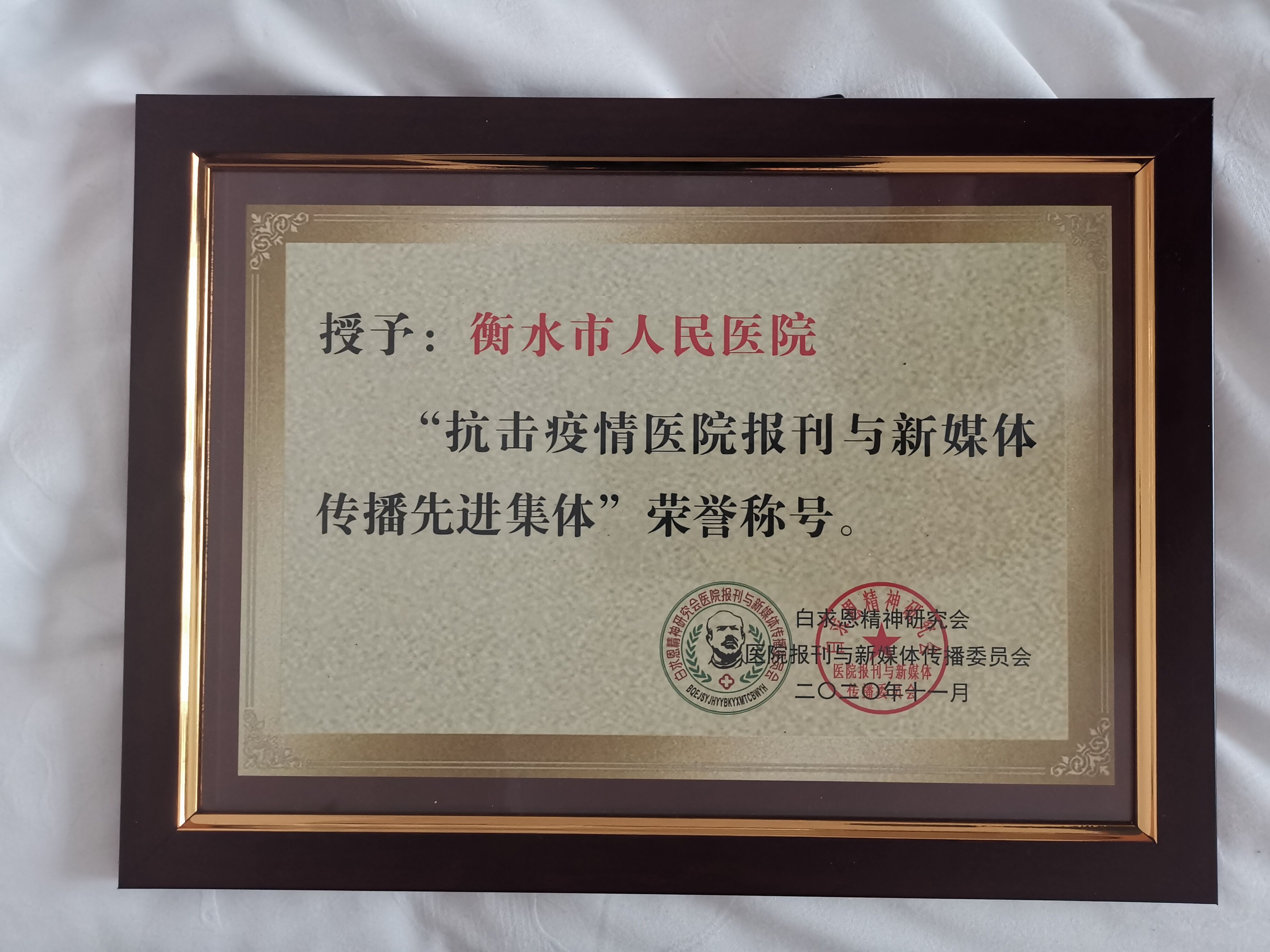会上,我院荣获“抗击疫情医院报刊与新媒体传播先进集体”荣誉称号;我院宣传处长卢桥荣获“抗击疫情医院报刊与新媒体传播先进个人”荣誉称号。