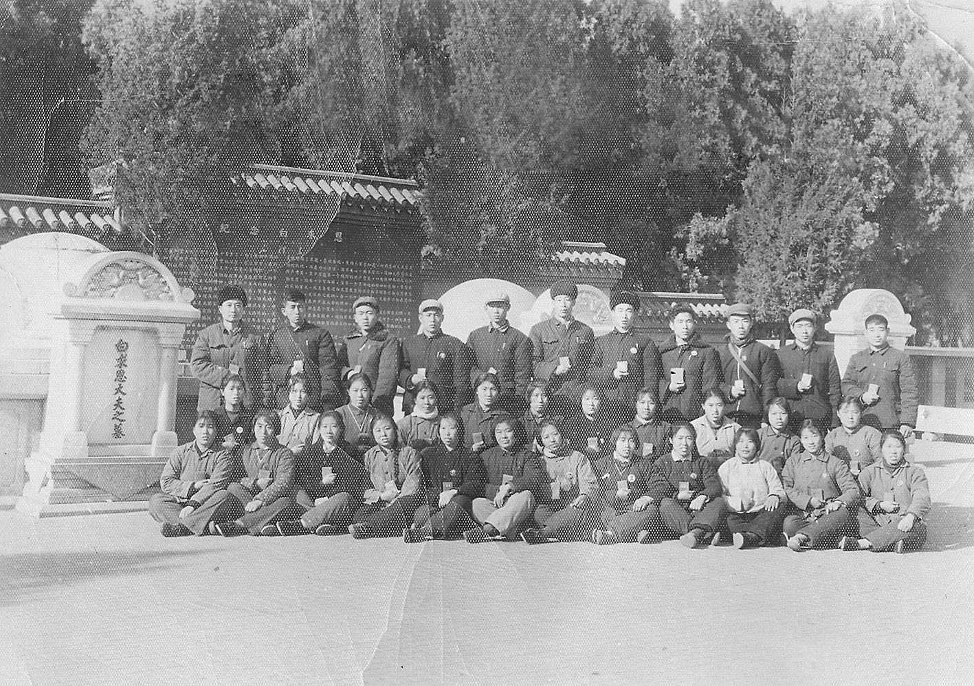 那是1970年的秋冬,在毛主席“大学还是要办的”号召下,河北省的高校开始招生。照片上的30多人都是衡水地区有幸被河北大学录取的首届工农兵学员。当年从衡水乘火车去学校报到,要走石家庄,这里需要解释一下:河北大学原址在天津市,1970年从天津市迁往河北省;为了不影响招生,校部及理科系迁往保定市,而文科系临时迁往邢台市东北约30公里的唐庄农场“暂栖身”。同学们12月3日抵达石家庄后,在河北师大学生宿舍借住了一夜。4日下午,理科、文科将“分道扬镳”去保定和邢台唐庄报到。不少同学是头一次到石家庄,大家就利用上午的半天时间,怀着凝重和崇敬的心情,集体瞻仰了华北军区烈士陵园。