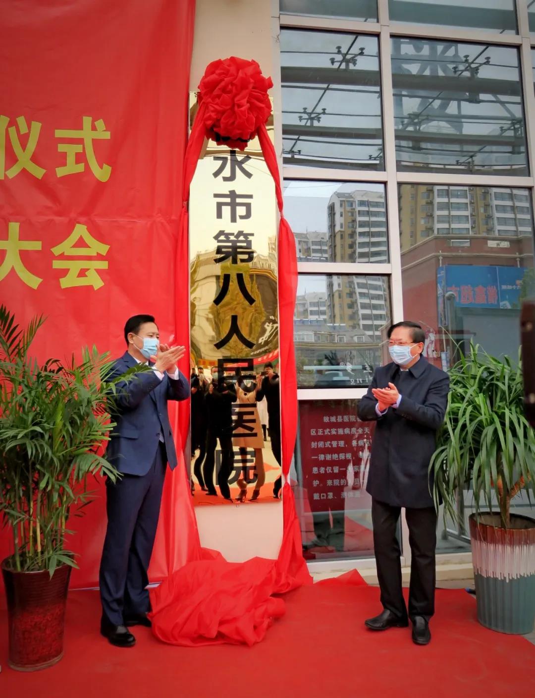 揭牌仪式上,衡水市卫健委主任王凤鸣宣读了《同意故城县医院增加“衡水市第八人民医院”第二名称的批复》。并与故城县委书记彭晓明共同为“衡水市第八人民医院”揭牌。